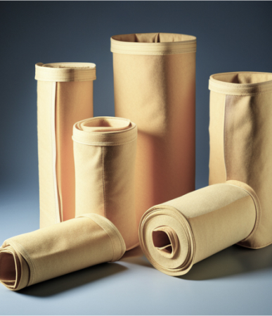 Mangas en distintas telas como, Mangas de fibra poliamida P84, Mangas en tela PTFE, Mangas en poliéster antiestático, Mangas en tela ryton, Mangas en tela homopolímero acrílico, Mangas en tela Nomex, Mangas en tela poliéster (pe) con repelente al agua y aceite, Mangas en polipropileno (pp).